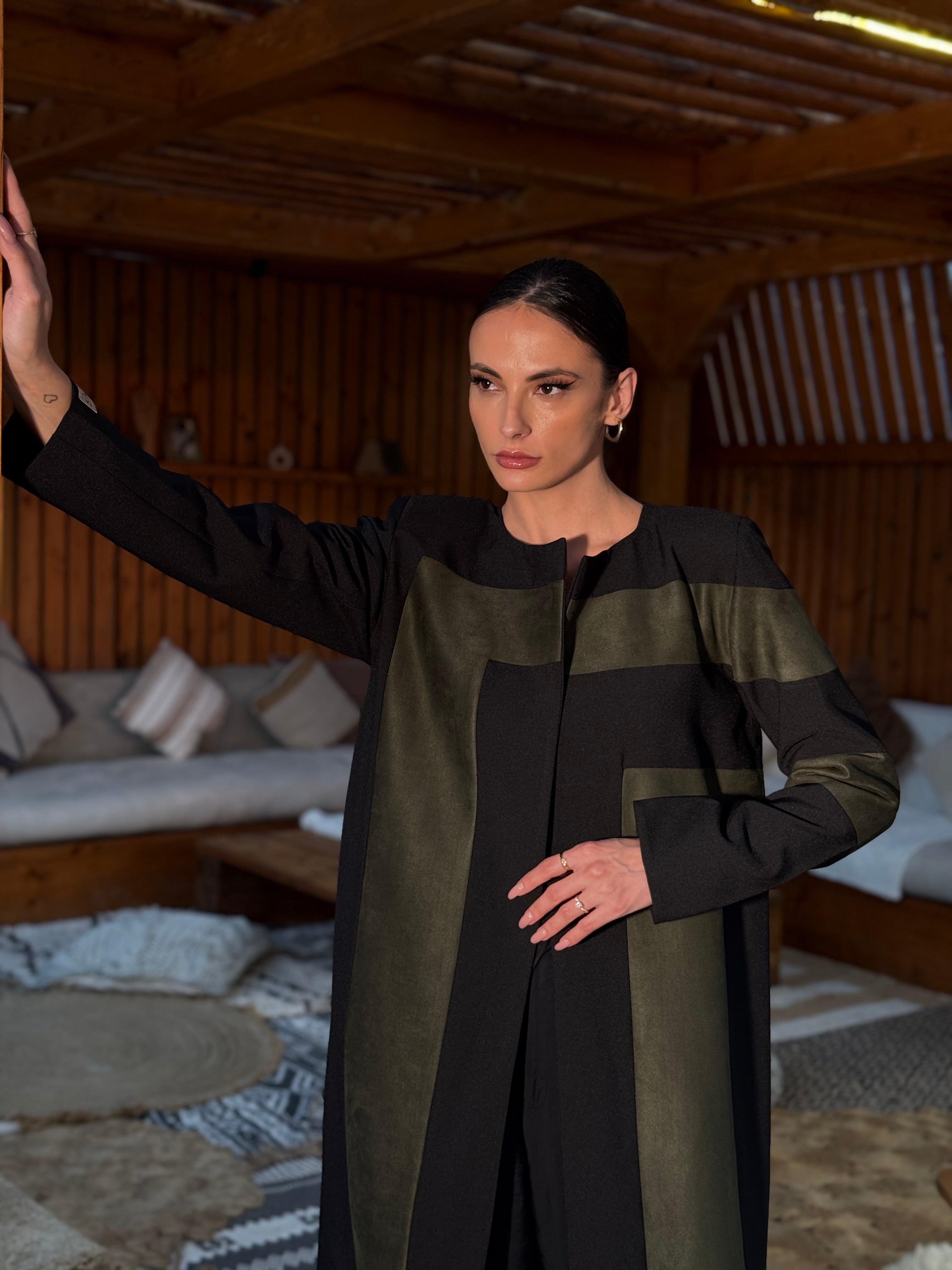 Fully lined blazer with padded shoulders, suede with heavy crepe